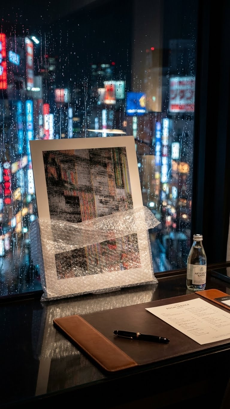 Esta obra não é uma impressão. Trata-se de um desenho a caneta , criado através de um processo em que um algoritmo guia um braço robótico para desenhar a imagem linha a linha com canetas físicas. Cada linha é desenhada fisicamente por um plotter de caneta, criando uma textura e profundidade únicas. Este método permite uma densidade de linhas incrível, criando uma superfície rica e tátil com um brilho único que não pode ser obtido com a impressão padrão.