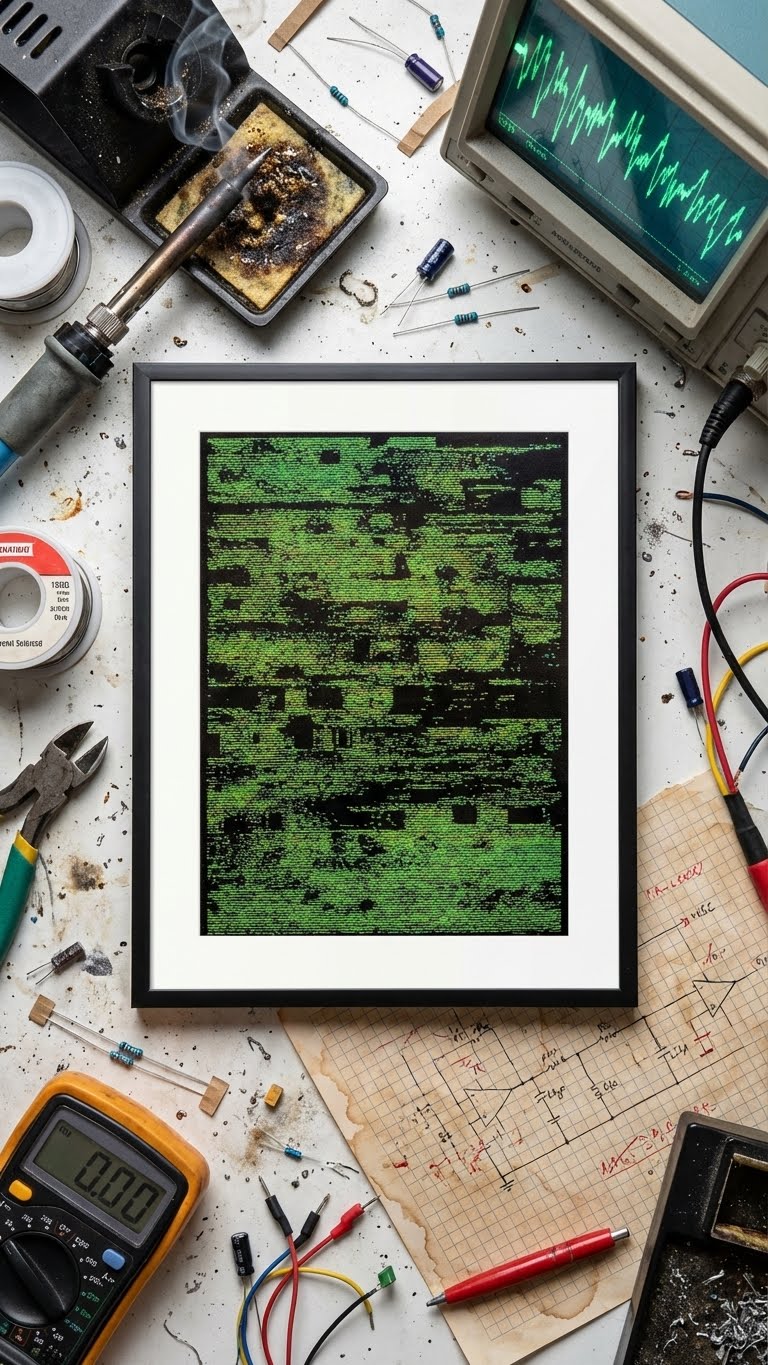 "Signal Decay" é uma obra cativante para os entusiastas da tecnologia retro, da arte glitch e do design contemporâneo, oferecendo uma sofisticada homenagem à beleza da imperfeição.