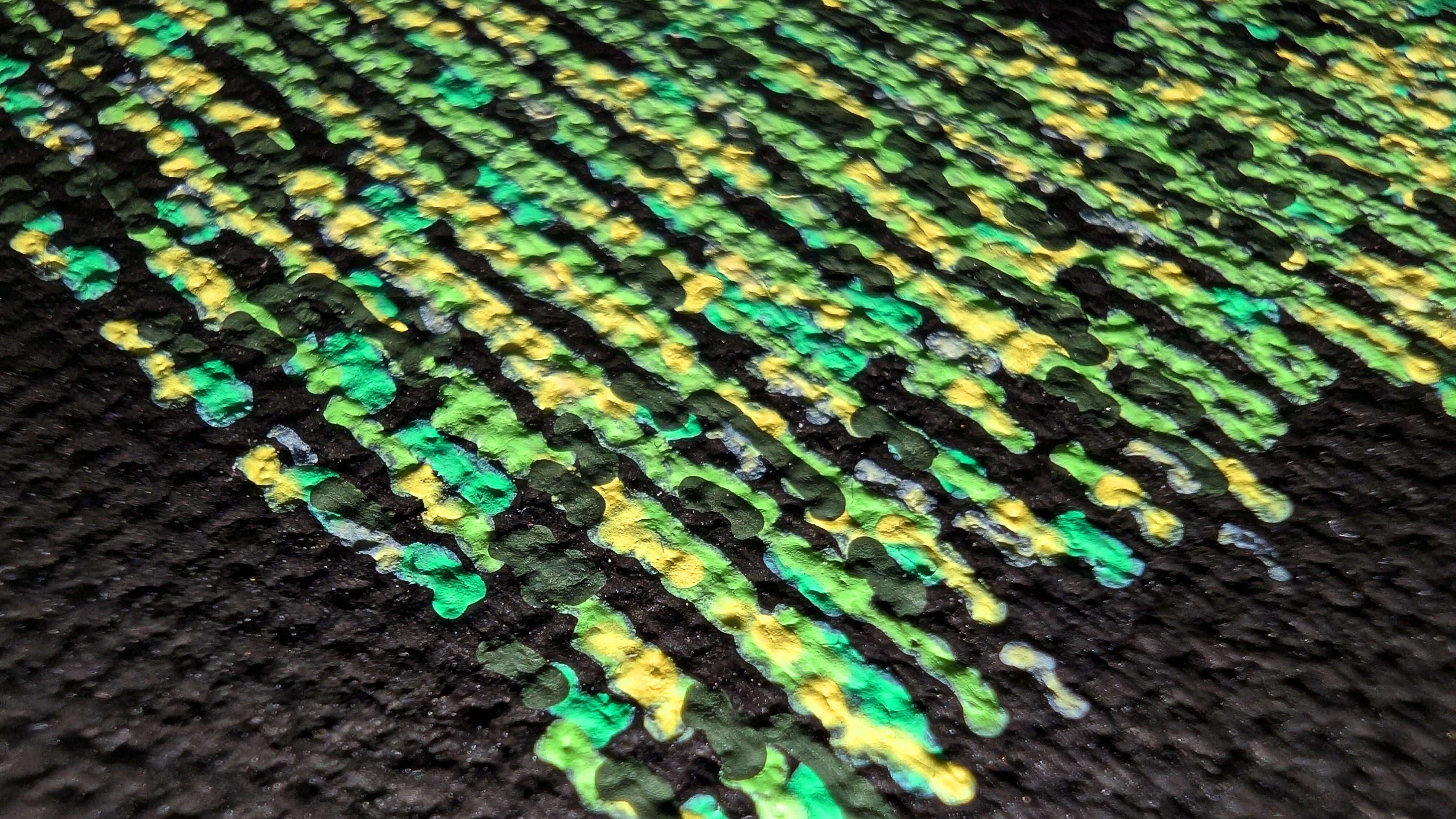 Esta obra não é uma impressão. Trata-se de um desenho a caneta , criado através de um processo em que um algoritmo guia um braço robótico para desenhar a imagem linha a linha com canetas físicas. Cada linha é desenhada fisicamente por um plotter de caneta, criando uma textura e profundidade únicas. Este método permite uma densidade de linhas incrível, criando uma superfície rica e tátil com um brilho único que não pode ser obtido com a impressão padrão.